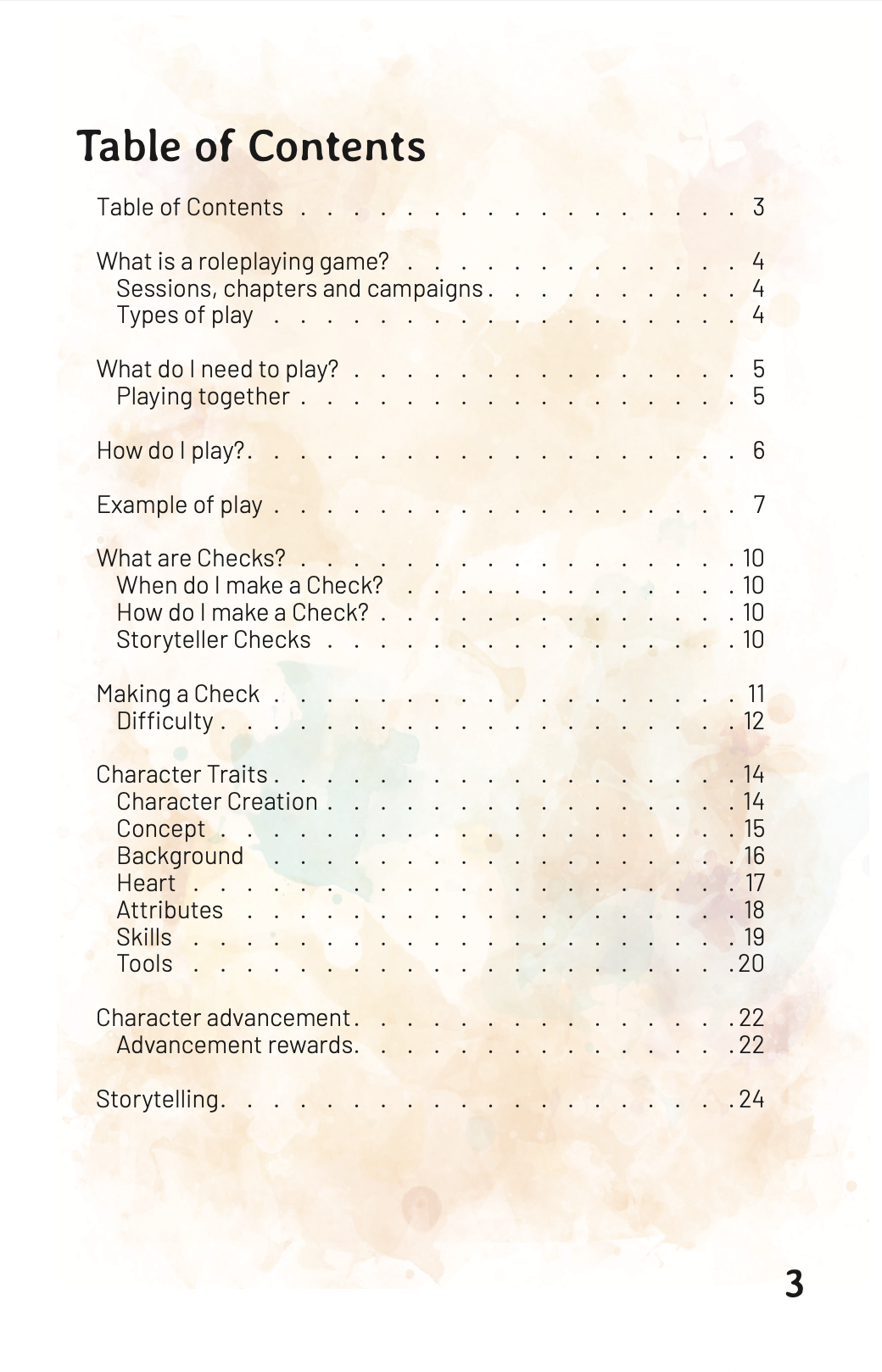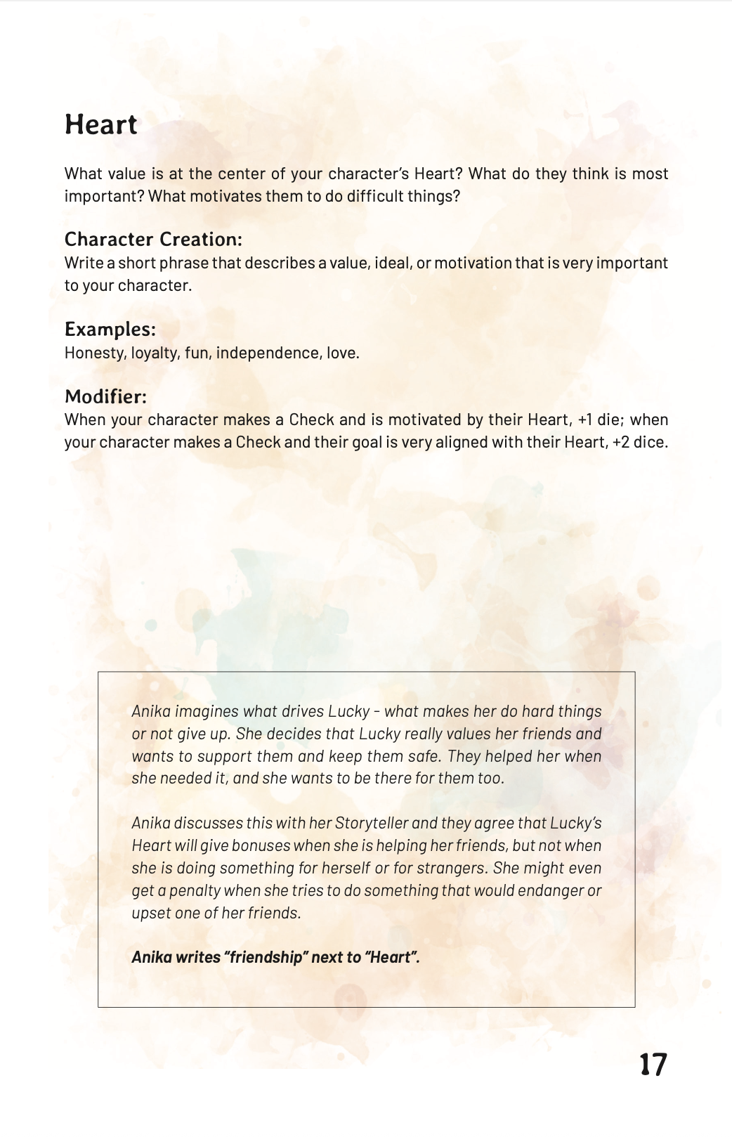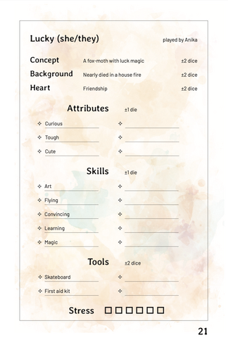 Other lightweight d6 systems that Anika had played (like Atlas Games' Magical Kitties Save the Day and Michael Low's Stories RPG) were influential in its foundational design.